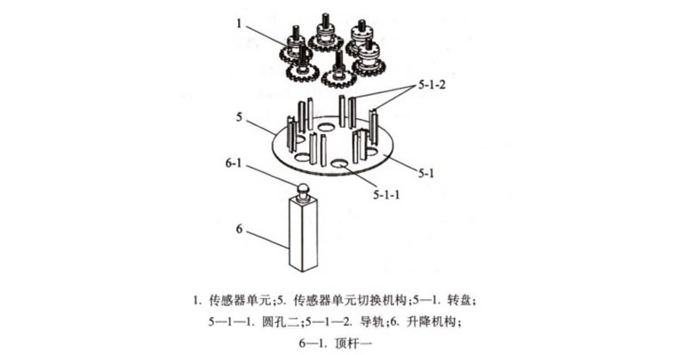 2、軟件根據(jù)扭矩扳手的示值范圍確定校準(zhǔn)點(diǎn)后 ,通過下位機(jī)控制傳感器單元切換機(jī)構(gòu)選擇相應(yīng)量程的傳感器單元,升降機(jī)構(gòu)推動傳感器單元上升并與連接軸連接;
