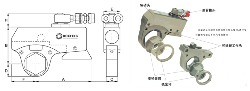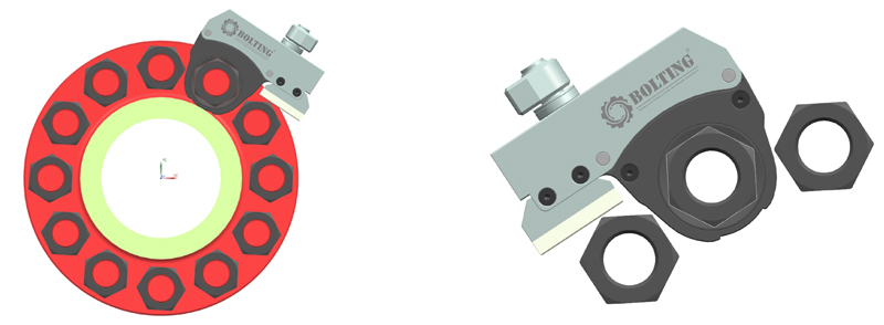 石油防噴器采油樹專用缺口式超薄中空液壓扭矩/扭力/力矩扳手,緊固或拆卸過程中,無(wú)需反復(fù)取下,一次安裝即可。