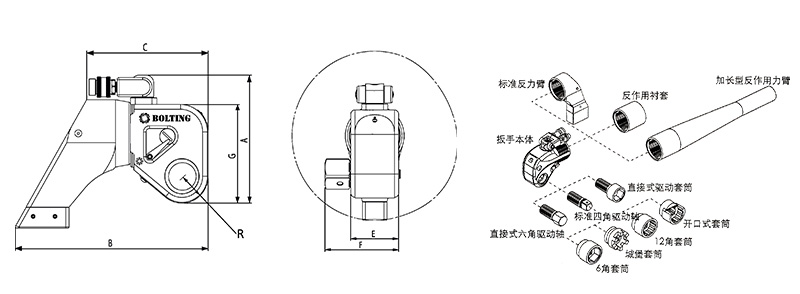 產(chǎn)品的選取依據(jù)螺栓鎖緊和拆松扭矩而定,扭矩值會(huì)因螺栓直徑和強(qiáng)度等級(jí)不同而有所變化。 |