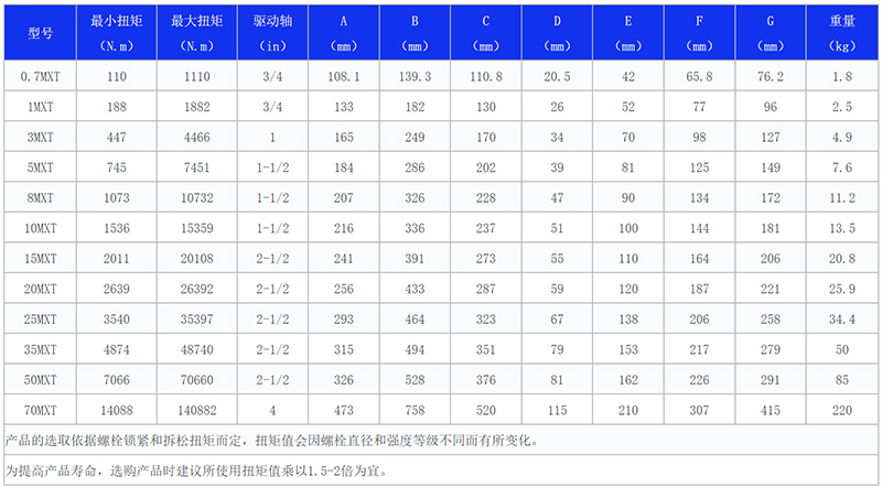 在驅動液壓扳手型號中,5MXT是除了3MXT之外最常用的液壓驅動板手型號之一。那么,5MXT型號液壓扭力扳手的扭矩范圍是多少?適用的螺栓規(guī)格大概多大?具體型號參數(shù)如何呢?