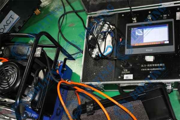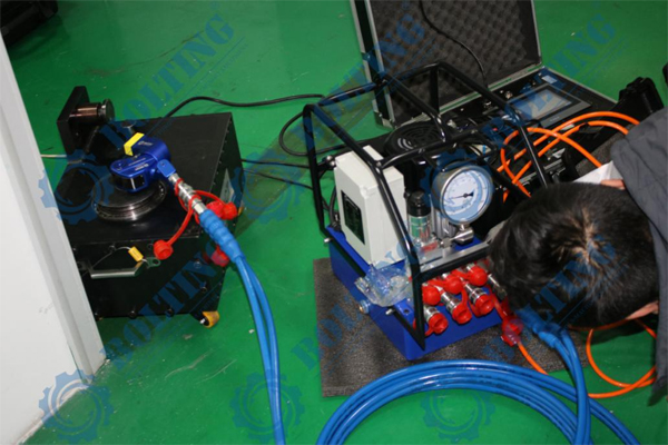 液壓扭力扳手第三方扭矩校驗(yàn)檢測(cè),理論上液壓扭力扳手檢測(cè)標(biāo)定與液壓泵的型號(hào)和流量無(wú)關(guān),液壓扭力扳手泵經(jīng)過校正壓力表,均可對(duì)液壓扭力扳手進(jìn)行檢測(cè),經(jīng)過長(zhǎng)期及大量的實(shí)踐證明,液壓泵的流量與扭矩大小息息相關(guān),舉例說明,BOLTING博霆PE55液壓扭力扳手泵和BOLTING博霆PE110液壓扭力扳手泵,采用同一塊經(jīng)過校驗(yàn)壓力表,分先后順序緊固一顆螺栓,由PE55液壓扭力扳手泵配套液壓扭力扳手先進(jìn)行緊固,達(dá)到設(shè)定壓力后(300bar),擰不動(dòng)了,換PE110液壓扭力扳手泵,壓力同樣設(shè)定300bar,壓力相同,螺栓同樣可以轉(zhuǎn)動(dòng),反之,采用PE55液壓扭力扳手泵,配合此扳手,壓力設(shè)定到300bar,確無(wú)法松動(dòng)螺栓,配PE110液壓扭力扳手泵可輕松拆卸此螺栓,得出結(jié)論,液壓扭力扳手在工作過程中,需克服摩擦力,雖然液壓扭力扳手無(wú)沖擊性,但流量決定可以克服多少摩擦力,液壓扭力扳手怎樣檢測(cè)更精準(zhǔn)?市場(chǎng)上部分廠家流量與扭矩存在虛標(biāo)成分(電動(dòng)液壓泵流量檢測(cè)最簡(jiǎn)單方式,可采用單向閥裝置連接液壓油管,將液壓泵調(diào)整至所需檢測(cè)的壓力流量,每分鐘溢出的油量則是液壓泵流量,測(cè)流量裝置BOLTING博霆有售),計(jì)量院或第三方檢測(cè)機(jī)構(gòu)所采用的液壓泵型號(hào)不盡相同,采用購(gòu)買液壓扭力扳手配套的電動(dòng)液壓扭力扳手泵,配套進(jìn)行檢測(cè)更為精確。